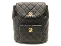 CHANEL シャネル リュックサック ブラック ゴールド金具 ラムスキン ストラップ短め【471】L