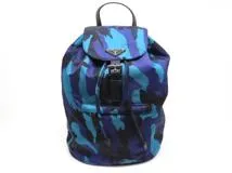 PRADA プラダ リュック カモフラージュ リュックサック ネイビー/ブラック ナイロン/サフィアーノ BZ0032 2148103817342 【中古】【大黒屋】【472】
