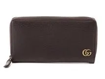 GUCCI グッチ ダブルg ラウンドファスナー 長財布 ダークブラウン レザー 1410459 2148103924415【437】