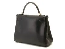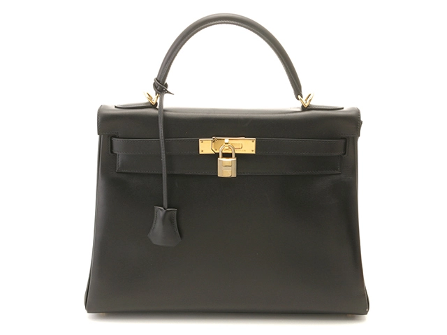 HERMES エルメス バッグ ケリー32 ブラック/GP金具 ボックスカーフ 内縫い □F刻印【431】2148103910692