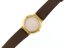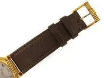 DIOR ディオール 57.121 シルバー文字盤 GP/革 クォーツ レディース腕時計【207】2143200637985