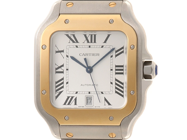 Cartier カルティエ 腕時計 2022年正規品 サントス ドゥ カルティエ ウォッチ LM W2SA0009 K18イエローゴールド/スティール シルバー文字盤 自動巻き【472】SJ
