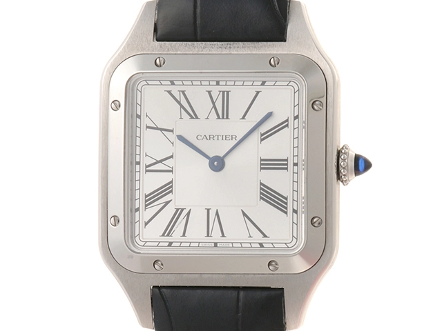 Cartier カルティエ サントスデュモンLM WSSA0022 シルバー文字盤 ステンレススチール ブルー 革ベルト クォーツ メンズ 腕時計 K