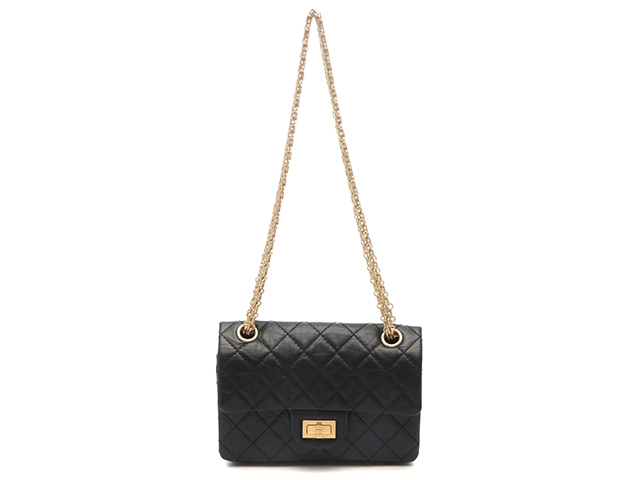 CHANEL シャネル 2.55ミニハンドバッグ ブラック/GP エイジドカーフスキン 【471】M