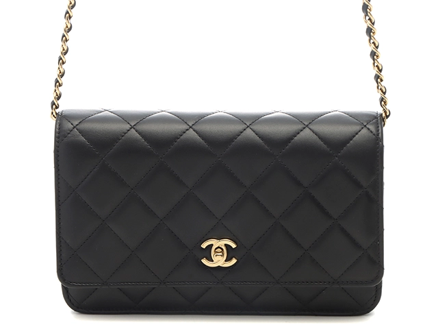 CHANEL シャネル ショルダーバッグ マトラッセ ターンロック チェーンウォレット ブラック・GP金具 ラムスキン AP4241 箱付き【472】HA