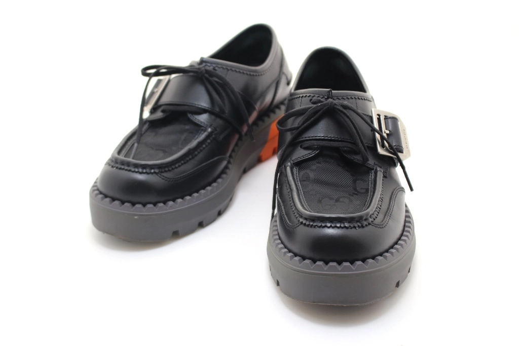 GUCCI グッチ 靴 シングルモンクローファー メンズ7ハーフ(約26.5cm) ブラッ/グレー/オレンジ 739868 2023AW