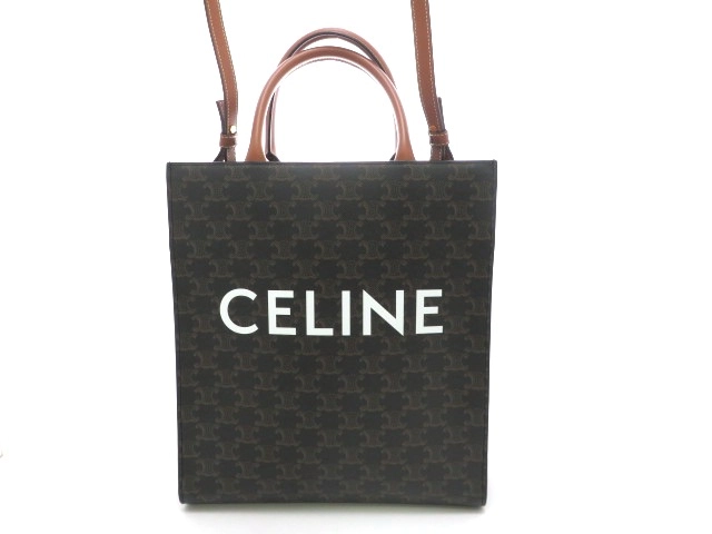 CELINE セリーヌ 2WAYバッグトリオンフ スモール バーティカル カバ トートバッグ タン コーティングキャンバス レザー【473】