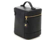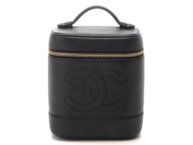 CHANEL シャネル ココマーク縦型バニティ ブラック/ゴールド金具 キャビアスキン A01998【472】YY