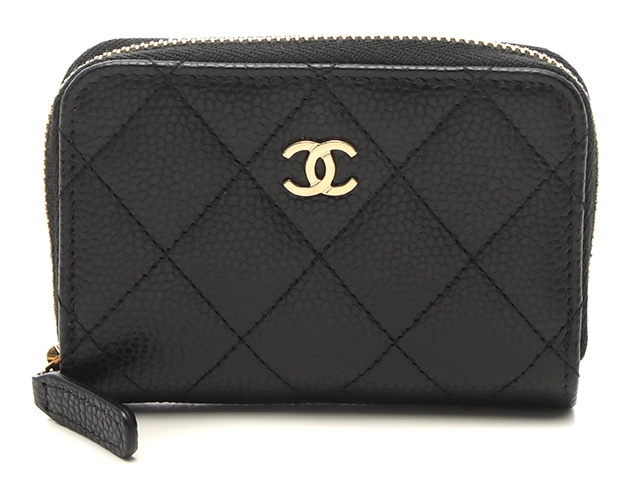 CHANEL シャネル マトラッセ ジップコインパース ブラック/GP キャビアスキン AP0216 コインケース【207】2141300464050
