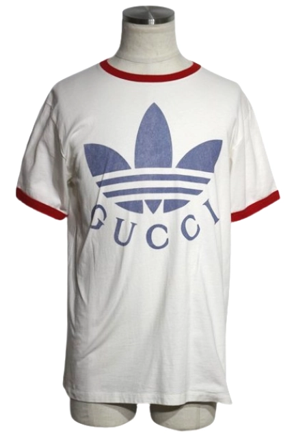 GUCCI グッチ 衣類 トレフォイルロゴ半袖Tシャツ メンズS ホワイト/ブルー/レッド コットン 702612 ( 2148103863615) 【200】