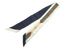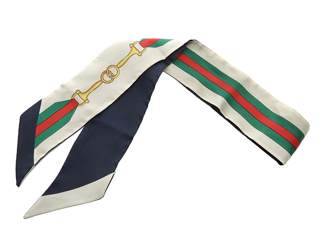 GUCCI グッチ スカーフ インターロッキングGホースピットプリント ベージュ/ネイビー【472】RKT